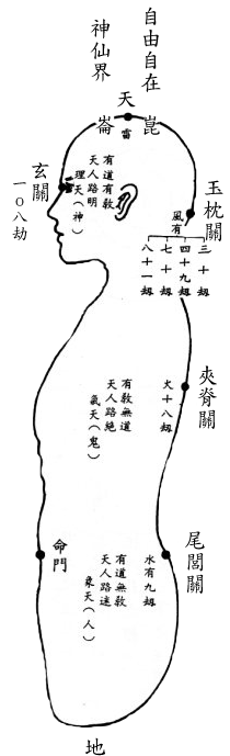 - 為督脈: 督脈者,由尾閭經夾脊、玉枕而上達泥丸者也。